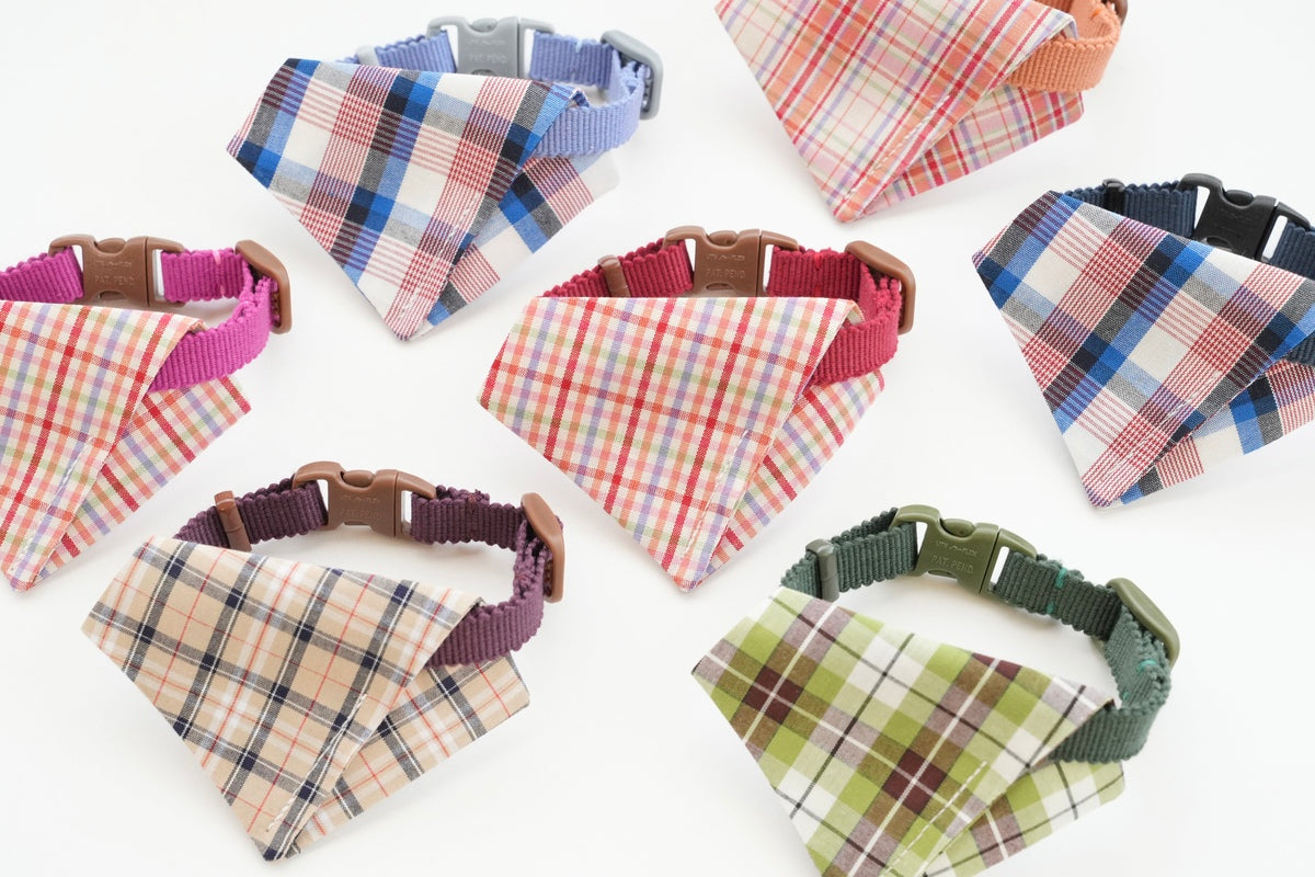 L&L Pawsは日本各地からその布を選び、香川のアトリエで猫と犬のためにかたちにします。首輪、バンダナ、リボン、コートやマットまで、すべて自社オリジナルデザインで日本製です。