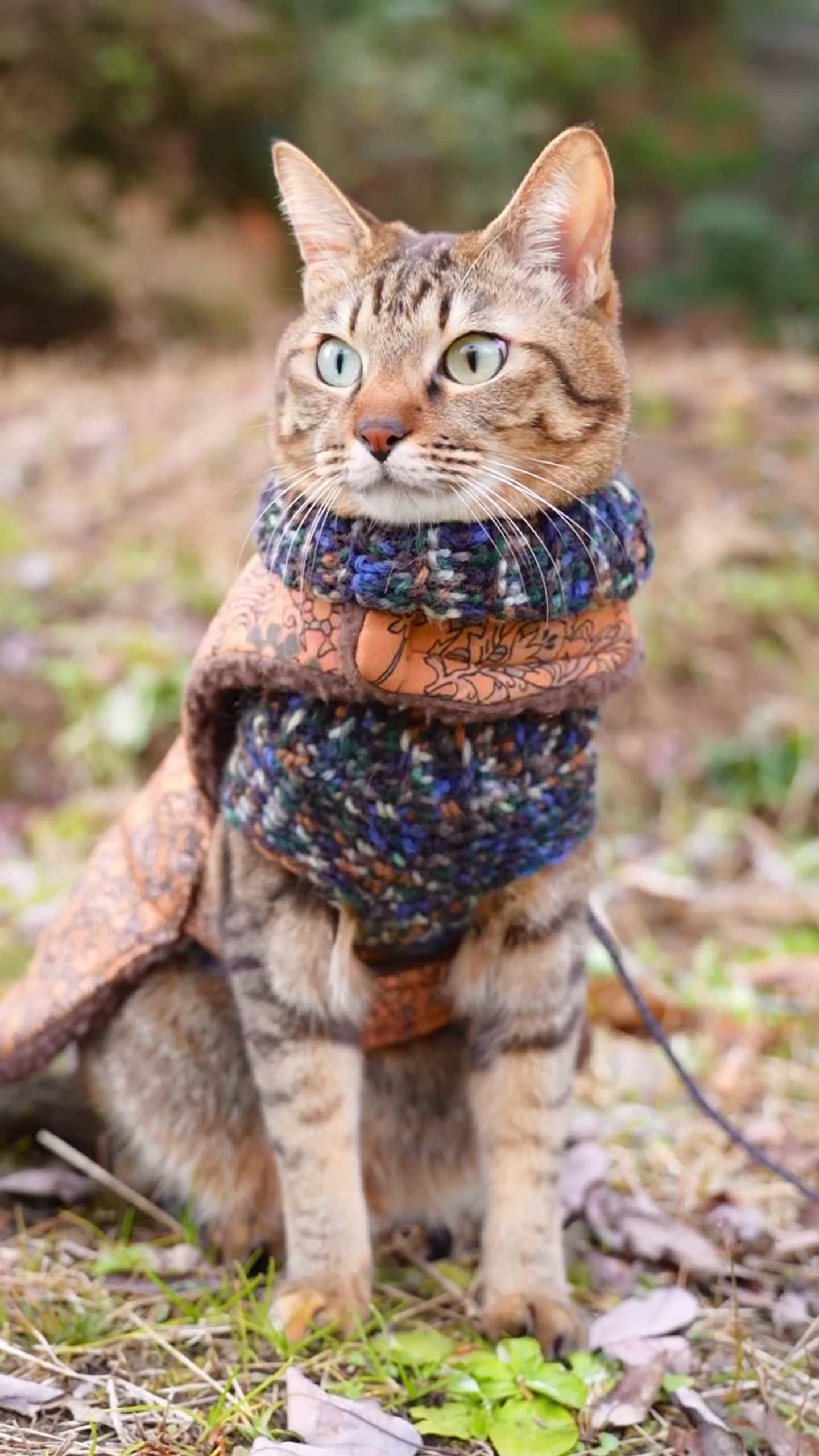 リードを着けての移動時や外出時などに、状況に合わせて着脱できる猫のためのコート。リードから手を離さずに脱ぎ着させたいというニーズからうまれました。