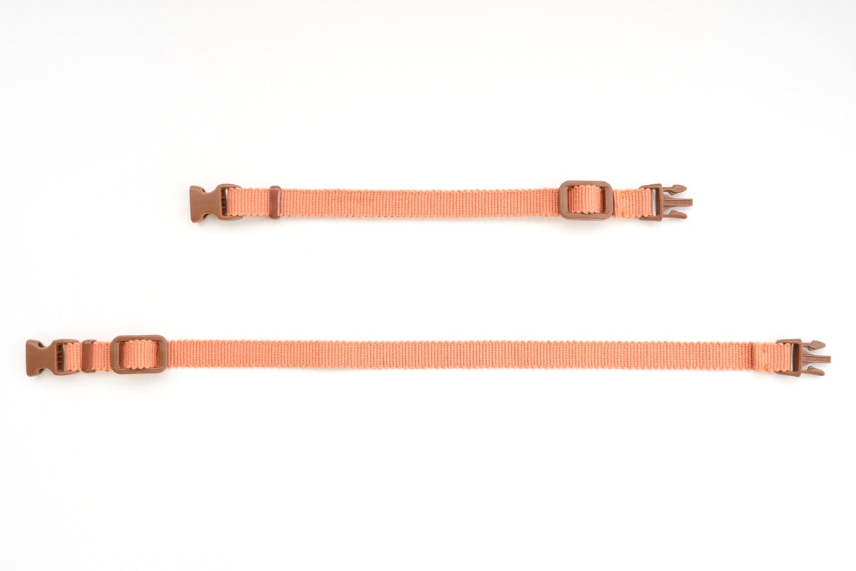 We use the Duraflex “Kitty Clip” safety buckle, made in the USA.Release load: approx. 10 lbs / 4.5 kg.
