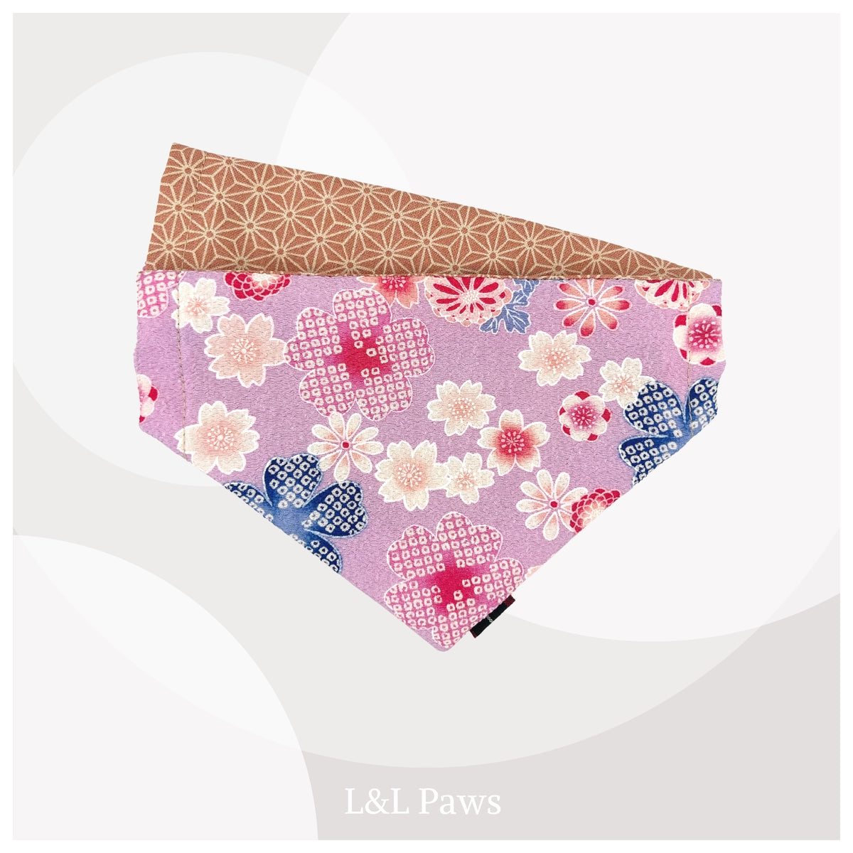 花柄(縮緬)と麻の葉柄のリバーシブルバンダナ